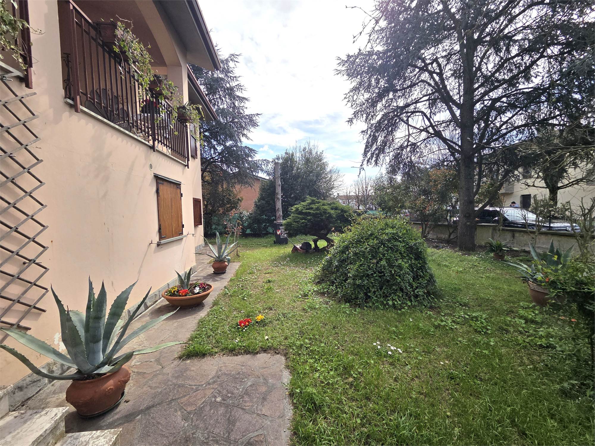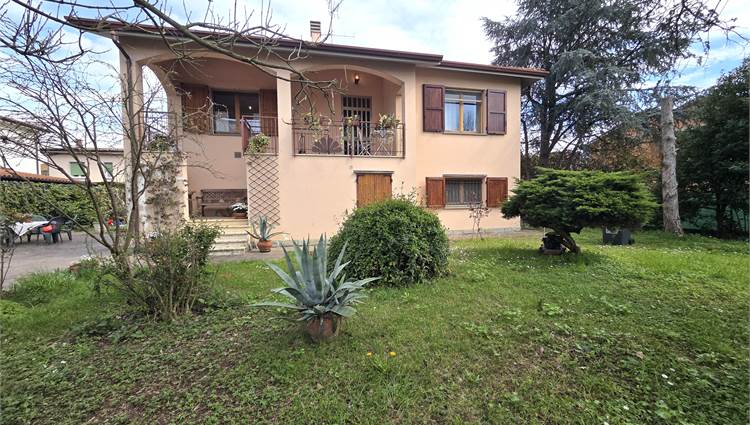 Villetta indipendente con giardino alberato su 4 lati degli anni '80, già suddivisa in 2 unità immobiliari ognuna su unico piano e con proprio ingresso indipendente, oltre ad accessori come locali uso studio, tavernetta, tutti con affacci sul giardino.