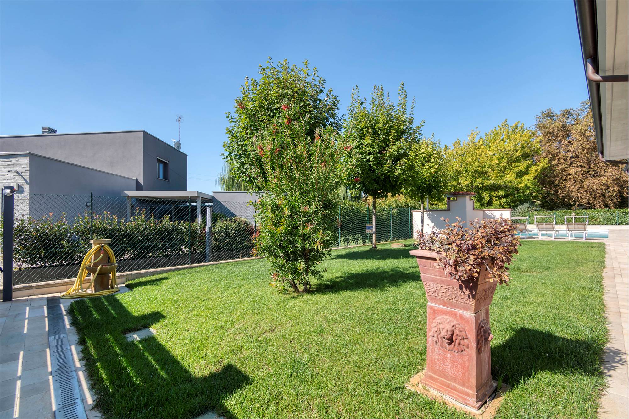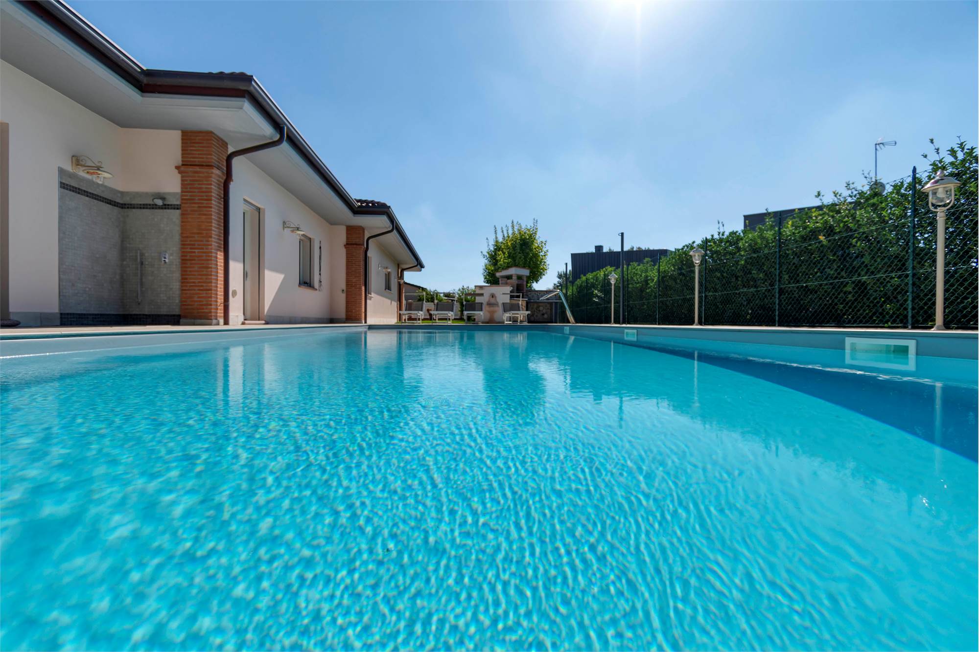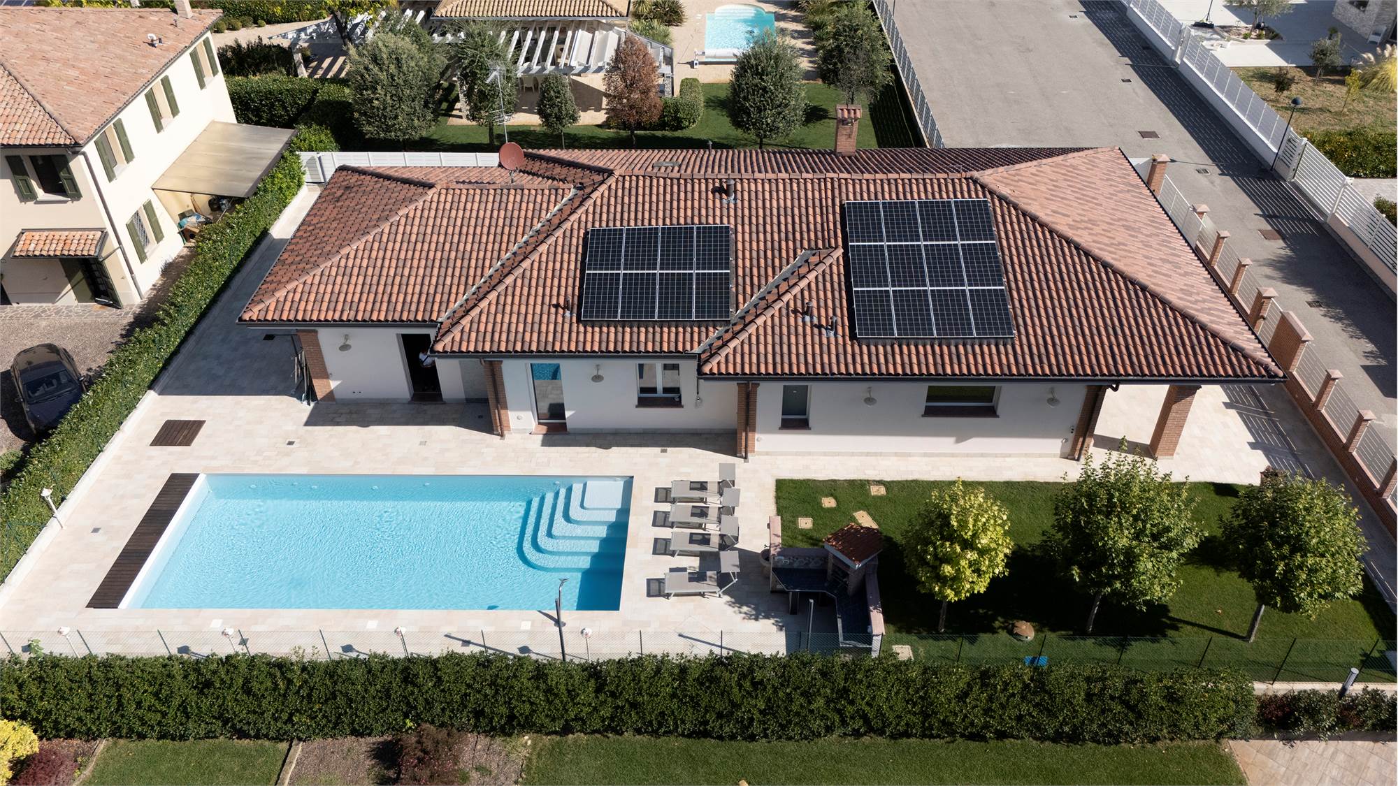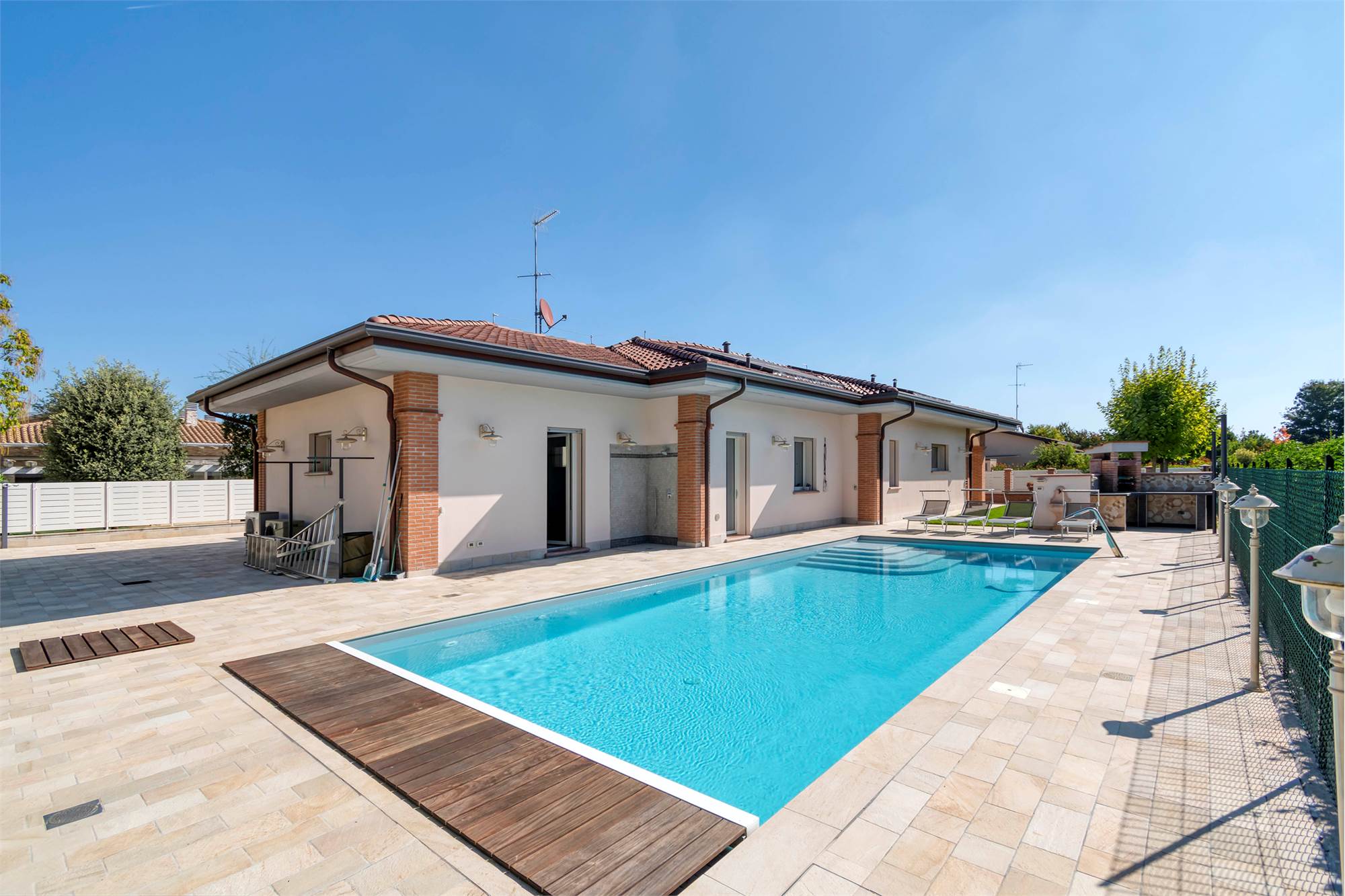Granarolo - A 500 mt dal centro paese in contesto verde, riservato, silenzioso e comodo a tutti i servizi (mezzi pubblici, supermercati, negozi etc...) villa di pregio di nuova costruzione (2022) ad alto risparmio energetico su un unico livello e con ambienti di altezze 3mt. Composta da salone di 40 mq, cucina di oltre 20 mq, 3 ampie camere matrimoniali (una con cabina armadio), 2 bagni finestrati, lavanderia, autorimessa doppia, sottotetto accessibile dall'interno con scala retrattile. Ampio giardino privato in parte pavimentato (utile per comodi posti auto) ed in parte a verde con sistema di irrigazione, per totali 800 mq c.a. Piscina 5x13 / h 1.70 con copertura invernale e illuminazione notturna. Cucina esterna in muratura con impianto a gas. Pavimenti e rivestimenti in gres effetto cemento Marazzi, infissi in alluminio con vetrocamera antisfondamento, zanzariere e tapparelle elettriche con sistema frangisole, sistema di allarme con videosorveglianza esterna ed interna, impianto fotovoltaico a 7kwh. LIBERO A ROGITO. Classe energetica A3 - € 1.550.000 Rif. SI 086 - Agenzia SherlockHome Tel: 328.5821041 - www.sherlockhome.it - PERIZIE E CONSULENZE GRATUITE. La geolocalizzazione su mappa è nelle vicinanze dell'immobile in oggetto e non precisa per motivi di privacy. Immagini con arredi simulati da rendering, Tutte le informazioni relative all'immobile in oggetto verranno fornite previa sottoscrizione del foglio visita.